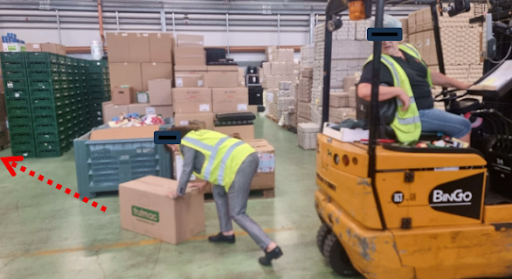 Die Mitarbeiterin G.A. wurde während der Arbeitszeit und während sie sich im Lager befand, gegen 14.45 Uhr, vom Gabelstapler erfasst, der rückwärts von der Kollegin P.M. gelenkt wurde. Die Höheren Amtsträger der Gerichtspolizei der Carabinieri von Eppan werden, wenn sie den Versandraum betreten, am Unfallort auf das Personal des Roten Kreuzes treffen, das die Verletzte versorgte, die auf dem Boden lag und eine schwere Verletzung am linken Bein hatte, und der Gabelstapler war bei der Ankunft der Carabinieri bereits verschoben worden, da er von einem anderen Arbeiter benutzt wurde. Auf den von den Carabinieri unmittelbar nach dem Vorfall aufgenommenen Fotos ist die Verunglückte am Boden liegend zu sehen, und in der Nähe befindet sich ein Verpackungskarton. Außerdem geht aus der Beschreibung des Arbeitsinspektors in seinem gerichtlichen Bericht hervor, dass Frau G.A., die die Kartonverpackungen vorbereitete, gerade dabei war, die unbenutzten einzuräumen. Für diese Tätigkeit gab die Verunglückte an, dass sie den Karton mit den Verpackungen vor sich in den Bereich geschoben habe, der sich gegenüber ihrem Arbeitsplatz befindet. Diese Operation erforderte zwangsläufig das Durchqueren des Betriebsbereichs der Gabelstapler. Die Verletzte selbst hatte jedoch wahrgenommen und bemerkt, dass der Gabelstapler eine langsame Rückwärtsfahrt ausführte, und sie wird dies sowohl in den an die Carabinieri gemachten Aussagen als auch in denen am 02.05.2022 vor dem Arbeitsinspektor.